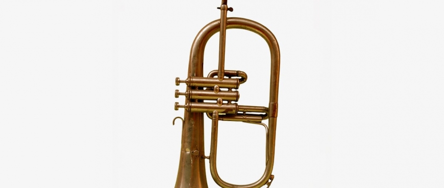 “Instrument de pistons en laiton réglé en si bémol avec la même texture du cornet. Corps conique, cloche large et la grande forme de son prédécesseur, le cornet de clés. La buse a d’une coupe profonde, en forme de presque entonnoir et un tube curseur le sert la justesse de réglage. La sonorité est ronde et lisse, bien que rugueux comme le cornet quand cet instrument est joué en fort intensité sonore”. Instrument composé par trois cylindres et trois pistons complétés par plaques de nacre. Il a un embout amovible. Instrument à vent de cuivre Couesnon Paris Paris – France,…